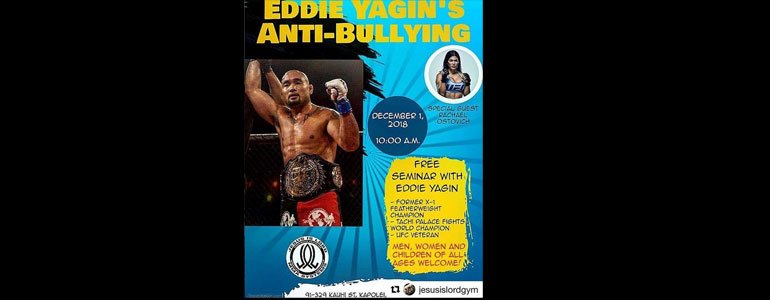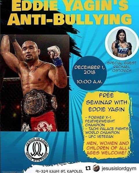 Jesus Is Lord gym is hosting UFC fighter @eddie_yagin’s and former X1 World Champion Anti Bully seminar December 1st. Did I mention it is completely FREE! Men woman and children are all welcome. See bellow for details.