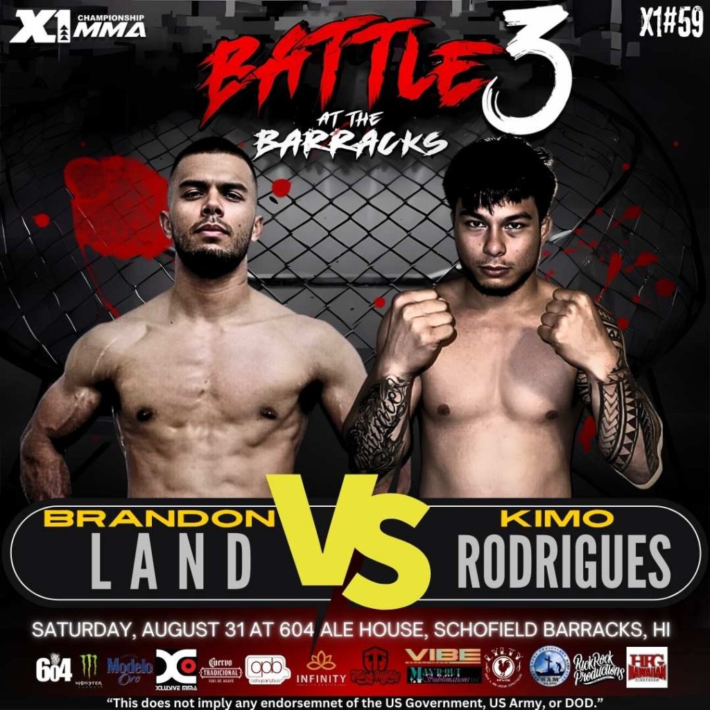 Get ready for an adrenaline-pumping night at X1-59 Battle at the Barracks 3 on August 31, 2024! Join us at 604 Ale House, Schofield Barracks, for an unforgettable evening of amateur MMA action. Check out these thrilling matchups: