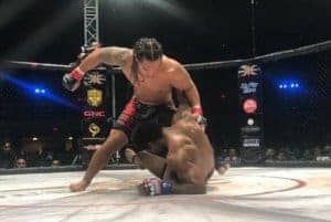 As soon as the referee gave the signal to go Schafforth stood, planted and threw. The high volume set up an early takedown that scored, but Schafforth did not follow up to take it to the ground. Lafaele did a good job of using head movement from taking serious damage in the early part of the round but the left hook that landed, landed hard, dropping him.  Schafforth followed up this time with a barrage of hard short left hand shots to the head before taking mount and sinking in the arm triangle for the submission finish at 3:02 of round one.